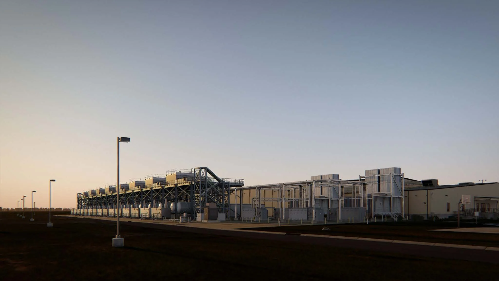 John Gerrard’s digitally rendered model of a data center in Pryor Creek, Oklahoma, critically confronts our perceptions of the visual and virtual landscapes of the twenty-first century. Gerrard’s work pictures the tangible infrastructure of artificial intelligence that is often invisible, showing us the novel architecture of data centers that now exist throughout a range of communities within the US. The production of this work using a digital simulation challenges the viewer to think about how artists can render the virtual worlds that the unremarkable industrial structures of data centers hold within. In producing a digital work depicting the very source of its production, John Gerrard recursively questions the changing relationship between digital art and data extraction. Label by William Armacost