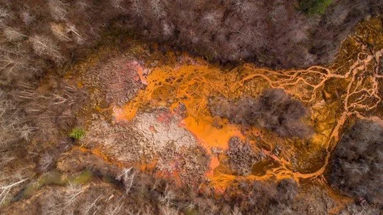 Aerial view of the acid mine drainage near Oreton, Ohio, 2018