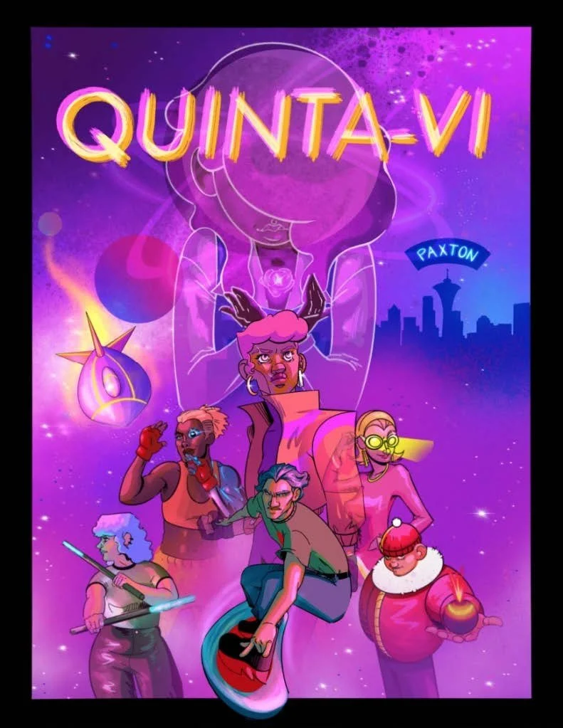 Within the promotional cover for N’Dea Tucker’s graphic novel, Quinta-VI, the experiences of Black and Brown communities are highlighted in the sci-fi adventure of Quinta. The graphic novel draws upon our current climate predicament, exploring how capitalistic consumption has stripped our planet of its riches while withholding such wealth from people of color. By drawing upon her personal knowledge of environmental racism in the Bronx, Yonkers, and Jamaica, Tucker demonstrates how the poisoning of a planet affects people of color differently and more directly in both worlds—our world and Quinta-VI's world. The graphic novel also illustrates the importance of involving individuals of color, such as Quinta, in efforts to combat the climate crisis. Label by Eliza Madison